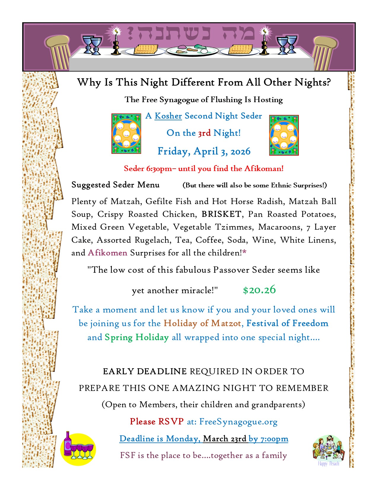 Registration Link: https://freesynagogue.shulcloud.com/event/Second-Night-Passover-Seder-26