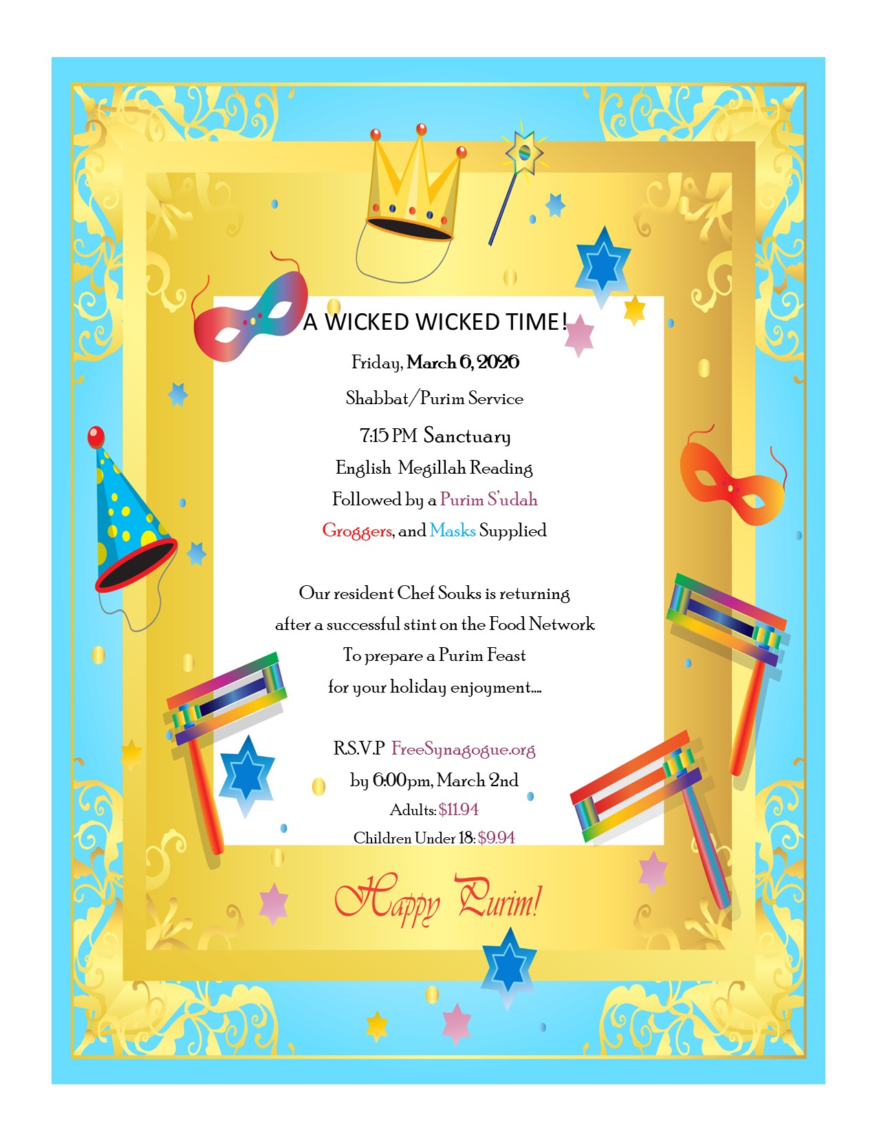 Registration Link: https://freesynagogue.shulcloud.com/event/Shabbat-Purim-Service-Mar-6th