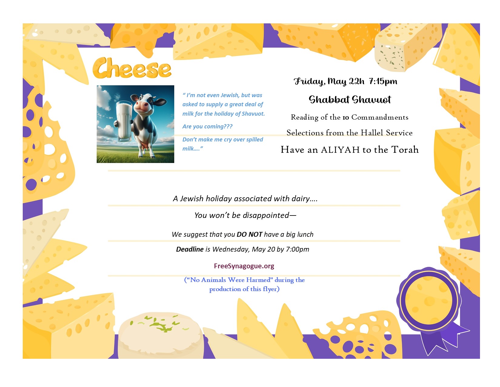Registration Link: https://freesynagogue.shulcloud.com/event/Shavuot-May22